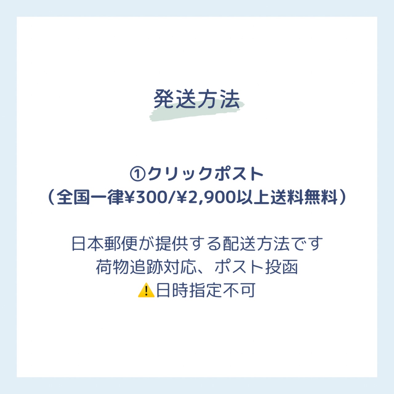 クリックポスト、レターパックについては発送方法の選択画面で日時指定しても適応されませんのでご注意ください